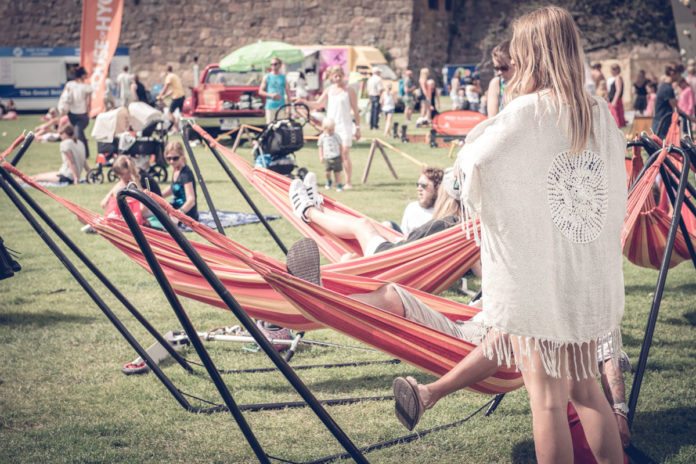 Anledningen till att vi har hängmattor på Hallifornia är att vi tar med oss arvet efter VARBERG CALLING for Peace genom att uppmärksamma att grunden för fredsarbete handlar om ett aktivt ställningstagande och en vilja till förändring. Din känsla av frid, nya idéer och tankar som motar bort stress blir en del av något större – ett stöd till kampen för fred! Visst kan ”skönt häng”, ett av våra favorituttryck, förena både njutning, humor och allvar!